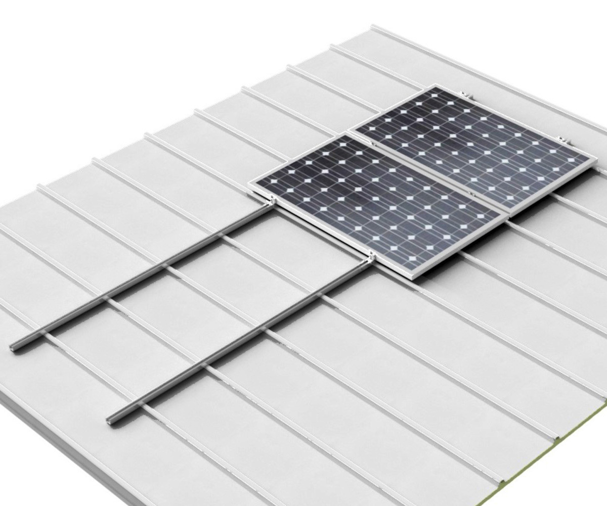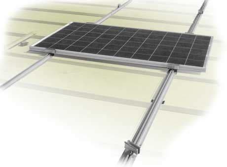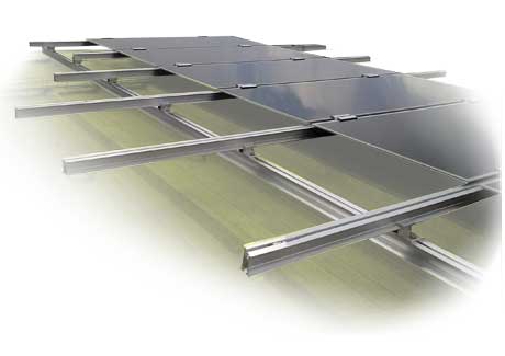 Se instalan dos rastreles sobre la cubierta y sobre ellas se colocan los paneles sujetos con grapas y tornillería de acero inoxidable.