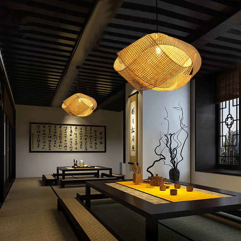 Lámpara de techo estilo nube de ratán y bambú