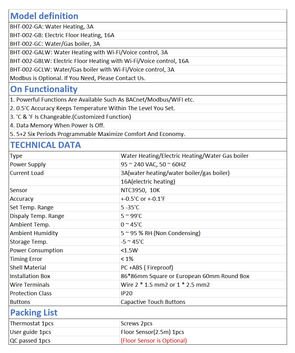 Atención: BHT-002GA/BHT-002GALW/BHT-002GC/BHT-002GCLW no incluye sensor de suelo